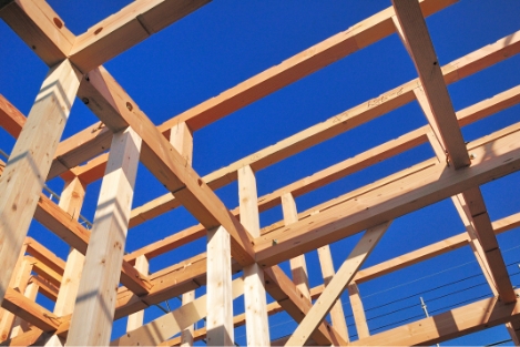 創業以来、当社の住宅は日本の伝統的な工法「木造軸組工法(在来工法)」を採用しております。台風、地震など災害の多い日本に適したこの工法は、柱・梁・筋交いに、木の「軸」を組み立てて建物を支え、しっかりした土台(べた基礎工法)に太い柱、それを中心に全体がしなやかな家になり、高い精度と丈夫さが求められます。そして、木には湿度調整機能があり、湿気の多い梅雨時期は室内の湿気を吸収し、冬の乾燥時には湿度を放出して室内を快適に保ってくれる効果が期待でき、四季の変化にとんだ日本の気候風土にも適しておいます。