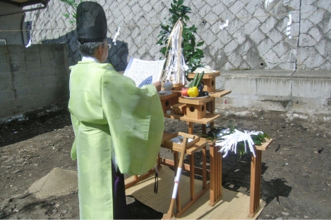 家を建てる前には必ず、その土地の神に敬意をはらい、使用の許しを得て、工事の安全と家内の繁栄を祈願する儀式をおこなっております。